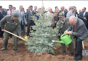 Bütün yapılanların vatandaşlar için olduğunun da altını çizen Vali Yenigün; “Erzincan Valiliği olarak burada hatıra ormanı yapmayı düşündük, kamu kurum ve kuruluşlarımız ile birlikte bugün fidan dikimi yapacağız. Şimdilik 3 hektarlık alanda bin fidan dikeceğiz. Bu alan daha da genişleyeceğiz. Türkiye’nin orman varlığı yaklaşık yüzde 27’lerde, ama Erzincan’da tüm güzelliklerine rağmen orman varlığında eksiğimiz var, yüzde 24. Türkiye ortalamasını yakalamamız, hatta geçmemiz gerekiyor. Orman bölge müdürlüğümüz, işletme müdürlüğümüzle bu oranı yakalamamız için çalışıyor. 2009-2010 yıllarda yaklaşık 2.5 milyon fidan dikilirken 2012 yılında 7 milyon fidan dikildi. Hedef Türkiye ortalamasını yakalamak ve ardından geçmektir. Herkesi ormanları korumaya ve elinden geldiği kadar ağaç dikmeye davet ediyoruz” diye konuştu.