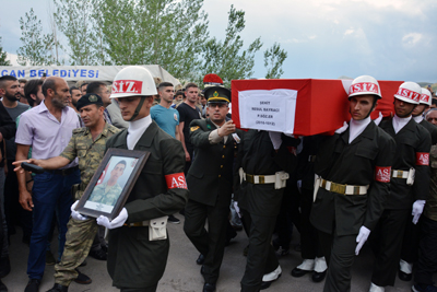 Hakkari'de teröristlerin hain saldırısı sonucu ağır yaralanan ve tedavi gördüğü Van'da şehit olan Sözleşmeli Er Resul Bayracı, memleketi Tercan'da son yolculuğuna uğurlandı.