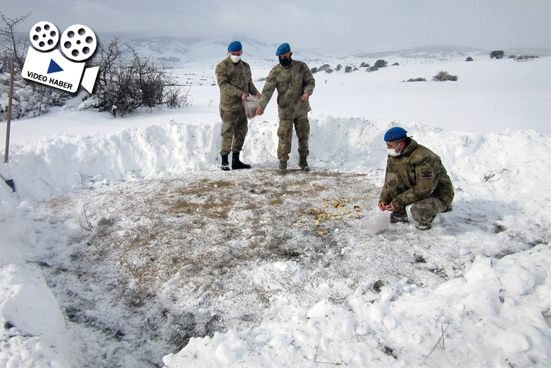 Erzincan'da komandolar, yaban hayvanları için doğaya yem ve yiyecek bıraktı.