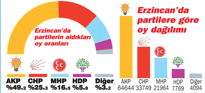 7 Haziran’da Erzincan’da AKP 64 bin 644, CHP ise 33 bin 749 oyla bir milletvekili çıkardı. CHP 815 oy daha az alsaydı AKP 2-0 yapacaktı. AKP’de şimdi gözler CHP’nin bu 815 oyunda.