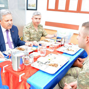 Askerlerle birlikte karavana yemeğini yiyen Vali Kahraman, yemeğin ardından yaptığı konuşmada, “Ülkenin birliğini ve bütünlüğünü, halkın yatağında huzurlu uyumalarını sağlamak için buradayız.